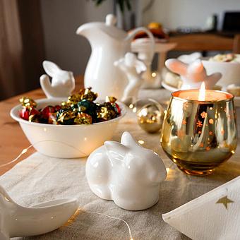 На создание этого кролика дизайнеров вдохновила фигурка, найденная на одном из винтажных рынков Англии. Она выделялась среди прочих вещиц своим необыкновенным стилем прежней эпохи... При взгляде на эту статуэтку из нежного фарфора сразу представляется летняя веранда за городом, домашние пироги, яблоки, кружевная скатерть, детский смех... Кролик такой маленький, а вызывает столько эмоций!