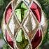 Сочетание красных, зелёных и золотистых ромбов, очерченных по периметру сверкающими линиями, делает эту ёлочную игрушку особенной. Стеклянная шишка, декорированная в стиле ар-деко, обязательно привлечёт внимание ваших гостей.