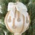 Новогодняя подвеска шар оформлена нежным бежевым текстилем и шелковистыми нитями, которые удачно перекликаются с узором из страз. Ещё больше роскоши придаёт этой игрушке белый бант, несущий в себе помпезность и шарм.
