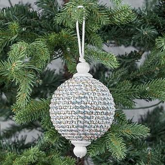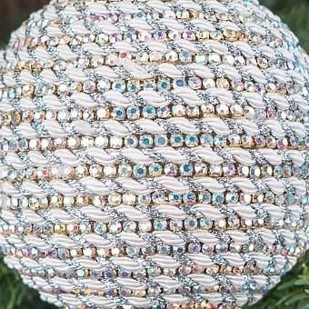 Ёлочная игрушка Белый шар с полосками и стразами
