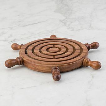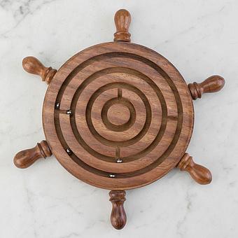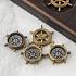 Необычное дизайнерское решение представлено в комплекте стратегической игры крестики-нолики. Морской стиль нашёл отражение при изготовлении фигурок из латуни в виде компаса и штурвала. Декоративные элементы утоплены в винтажную кожаную подставку с 4-мя латунными уголками. Смотрится роскошно и элегантно. Изделие послужит прекрасным интерьерным аксессуаром.