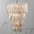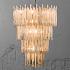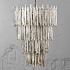 Впечатляющий конический светильник с четырьмя ярусами подвесок из дымчатого стекла перевернёт ваши представления о люстрах. Свет 14 лампочек рассеивается и дробится в стеклянных кристаллах, которые благодаря специальной обработке выглядят прозрачными сосульками. Стеклянное сооружение дополнено светлой матовой латунью.