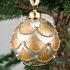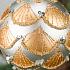 Узор, напоминающий морские ракушки или волны, украшает этот серебристый стеклянный шар. Золотистые линии на серебряном фоне выглядят утончённо и изысканно.