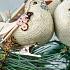 “На волю птичку выпускаю При светлом празднике весны”, - писал Александр Пушкин. Как известно, весна приходит сразу после Нового Года, так что самое время выпустить этих трёх блестящих птичек цвета розового золота на волю. Но они не хотят улетать. Грациозно опустившись на еловые ветки, они распушили хвосты из натуральных перьев. Пернатые сшиты из бежевой ткани, деликатно украшены блестками и удобно крепятся на ветку новогодней ёлки с помощью прищепки...