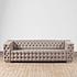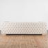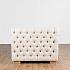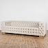 Стяжка капитоне известна с далёких XVII-XVIII веков, и вот уже столько столетий она не теряет своей актуальности. Сейчас, когда роскошь стремится стать в первую очередь комфортной, как нельзя выигрышно смотрится капитоне в сочетании с обивкой из ткани. Трёхместный диван, актуальной в наши дни кубической формы, на крепких ножках из массива дуба удачно сочетает в себе стиль и комфорт.