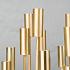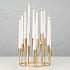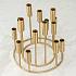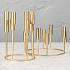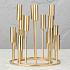 Непреодолимое очарование исходит от набора из 2-х подсвечников разных размеров в стиле ар-деко. Их лаконичный внешний вид из металла в виде рожков в форме цилиндров, аккуратно расставленных по окружности на разных уровнях, создаёт интересное и необычное архитектурное видение. Завораживающий золотистый блеск придает набору подсвечников изысканный художественный шарм. Изделие впишется в любой стиль декора.
