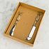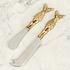 Набор для сыра - отличный выбор для любителей сыра и кулинаров, которые любят добавлять в свои блюда ещё больше вкуса и оригинальности. Набор отличается уникальным дизайном. Он состоит из 2-х ножей, выполненных из металла в винтажном духе, и оформлен пышными ручками в виде фигурок оленей золотистого цвета, что придаёт изысканность и элегантность. Прослужит долгое время.