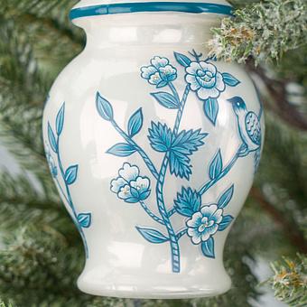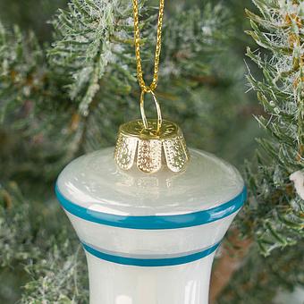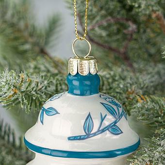 Бурый и белый медведь мирно сосуществуют в этом наборе из двух ёлочных игрушек. Стеклянные головы косолапого и полярного хищников одновременно напоминают и охотничьи трофеи, и театральные маски. Они выступают из зелёной хвои, словно звери спрятались в зимнем лесу и теперь не хотят выходить на опушку, но внимательно наблюдают за происходящим.