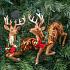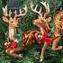 Олени, украшенные рождественскими венками, сбежали от Санта-Клауса и, свободные, скачут по зимнему лесу. Гордые животные, увенчанные рогами, изогнули в прыжке свои изящные спины. На мордах у них написано любопытство, великодушие и доброжелательность.