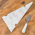 Этот стильный современный дизайн производит яркое впечатление. Оригинальная продуманная комплектация доски и ножа для нарезки любых сыров. Доска в виде треугольного куска сыра из белоснежного мрамора и нож с мраморной ручкой в виде очертания мышки.