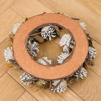 Набор из двух новогодних венков с шишками и перламутровыми шарами, XS