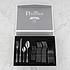 В элегантный набор входит ложка, вилка, нож и кофейная ложечка. Существенный дизайн представлен как рельефный декор по периметру ручек приборов. Набор упакован в красивую коробку, которая идеально подходит для хранения столовых приборов, а также можно элегантно преподнести набор в качестве подарка.