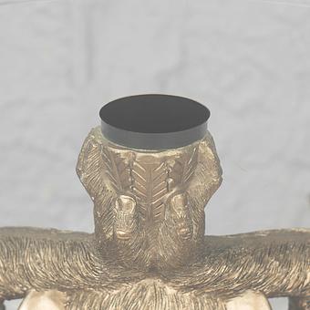 Немецкая компания Werner Voss пристроила к делу золотистого бегемота Пэтти высотой 45 см. Теперь обаятельное парнокопытное не просто украшает интерьер, но и поддерживает круглую стеклянную столешницу. В результате этого симбиоза получается журнальный стол в стиле ар-деко, приветствующем излишества.