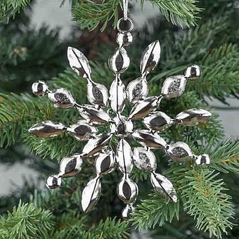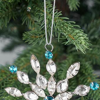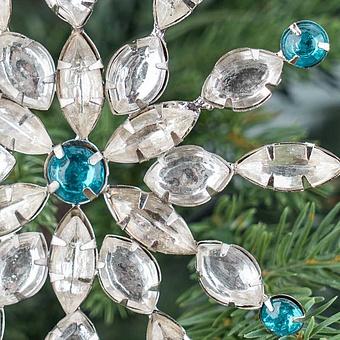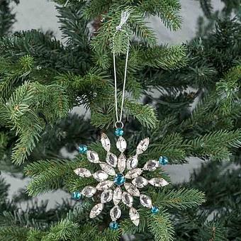Ёлочная игрушка Серебристая снежинка с голубыми стразами