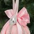 Светло-розовый ёлочный шар с серебряным орнаментом и бантом