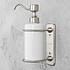 Настенный белый дозатор для жидкого мыла в подставке цвета матовый никель