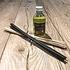 Набор состоит из наполнителя для диффузора 200 мл в бутылочке (тёмной или прозрачной) и тростниковых палочек (тёмных или светлых). Рассчитан на 10 недель использования.