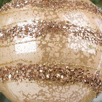 Как будто растрескавшееся стекло нежно-бежевого цвета со светло-коричневыми звездами на поверхности игрушки выглядит элегантно. Отражающийся свет в ёлочном украшении добавляет волшебства и праздничное настроение.