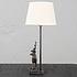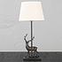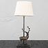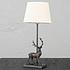 Мягкий свет, падающий из-под белого абажура, освещает фигурку животного. Лампа словно перенеслась в современный интерьер из старинного замка, где стены центрального зала украшены охотничьими трофеями хозяина.