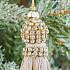 Подчеркнуть роскошное убранство пушистой ёлки и обратить на себя внимание всегда готова ёлочная подвеска, выполненная в виде изящной бежевой кисточки с бусинами и шариком со стразами. Украшение восхищает и покоряет.