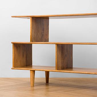 Оригинальный и динамичный, стеллаж Тибет станет частью любого современного интерьера. Асимметричное расположение полок добавляет этому предмету мебели парадоксальность. Сочетаясь с каучуковым деревом, натуральная кожа буйвола подчёркивает неординарные пропорции стеллажа. Особенность его дизайна в том, что он полностью обшит кожей - это делает стеллаж оригинальным и привлекательным.