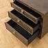 Оригинальная и удобная прикроватная тумба Тибет сделает вашу вечернюю рутину еще более приятной и комфортной. В трёх выдвижных ящиках разного размера вы сможете разместить очки, книгу, вечернюю косметику и всё, что входит в ваш ритуал отхода ко сну. Стильная отделка из натуральной кожи швами наружу и лаконичная форма делают этот предмет мебели прекрасным примером стиля лофт. Композицию завершают ножки из каучукового дерева.