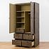 Четыре полки разного размера, пространство для вешалок и пять выдвижных ящиков – прекрасное решение для идеального порядка в ваших вещах. Нет утомительным поискам и раздражению, да здравствует упорядоченность и предсказуемость! Не перегруженный лишними деталями фасад шкафа дополняется ножками из каучукового дерева. Предмет мебели идеально впишется в интерьер спальни в стиле лофт.