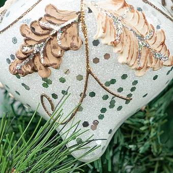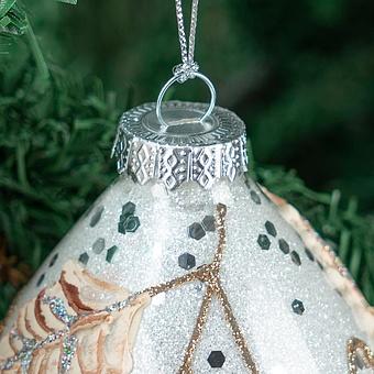 Ёлочная игрушка выполнена из английского фарфора Parian (Париан). Это особый вид фарфора без глазури или фарфоровый бисквит. Его новая формула была открыта ещё в 1842 году на мануфактуре“Copeland and Garrett” (Копилэнд и Гарет). А своим названием он обязан греческому острову Парос. Фарфор Париан отличается большей прозрачностью, блеском и ценится выше.
