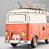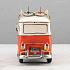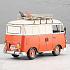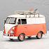 Винтажная фигурка красно-белого минивэна обязательно привлечёт внимание. Изделие мастерски выполнено из металла со множеством деталей. Чётко видны руль, зеркала заднего вида, фары, колёса и даже 2 доски для сёрфинга сверху на багажнике. Фигурка украсит полку или стол в кабинете, гостиной или детской.
