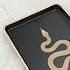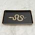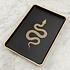 Элегантный чёрный поднос с золотой каёмкой и фигуркой змеи - отличное дополнение к праздничному столу. Мастерски выполненное изделие придаст изысканность и индивидуальность. Символизируя мудрость, силу и очарование, змея станет прекрасным талисманом в году Змеи.
