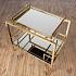Строгие геометрические линии, воплощённые в каркасе из стали золотистого цвета, гармонируют со столешницей из стекла. Филигранно проработанные детали, продуманная функциональность и изысканная элегантность - всё это сервировочная тележка Маджестик.