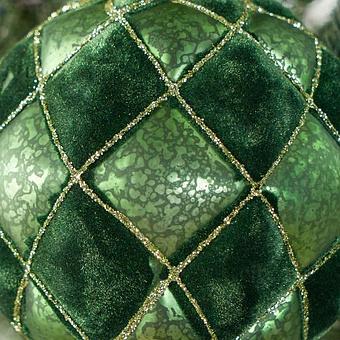 Украшение в виде бордового бархатного шара с клетками станет важным элементом новогоднего декора, который подчеркнёт изысканность и стиль пространства. Новогодний стеклянный шар воплощает в себе традиции и современность, делая декор ёлки поистине уникальным.