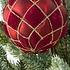 Благородный бордовый цвет подчёркивается золотым оформлением клеток. Шар отражает мастерство и внимание к деталям. Создаст атмосферу праздника и радости. Подойдёт для украшения новогоднего стола, камина или входной двери, придавая интерьеру завершённый вид.