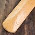 Крикетная бита — это специализированный спортивный инвентарь, используемый в игре крикет для отбивания мяча. Она состоит из рукоятки, изготовленной из тростника, и плоского лезвия из ивового дерева. Бита имеет характерную конструкцию: одна сторона — идеально плоская для удара по мячу, другая — с небольшим выступом. Надпись "polycoated" указывает на наличие защитного многослойного покрытия.