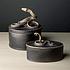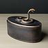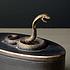 Изысканная овальная золотистая шкатулка в винтажном духе привлекает внимание. Фигурка змеи на крышке выделяется своим реалистичным видом, детальной проработкой и оригинальным дизайном. Изделие мастерски изготовлено из прочного и экологичного полирезина.