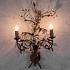 Элегантное бра с двумя рожками объединяет изящество ботанических мотивов и роскошь хрусталя, превращая светильник в настоящий декоративный акцент. Металлические ветви, украшенные хрустальными каплями, напоминают утреннюю росу, создавая атмосферу свежести и утончённости. Контраст массивного кованого металла и воздушного стекла рождает впечатляющий художественный эффект.