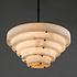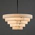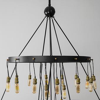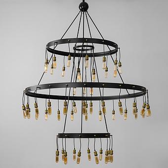 Пять колец разного диаметра из серого кальцита в тонких прожилках, оттенённого элементами из железа чёрного цвета - это люстра Вальс. Она и вправду напоминает развевающиеся одежды вальсирующих женщин.