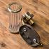 Эффектное бра из латуни с оригинальным абажуром, состоящим из акриловых стержней, выполнено в стиле ар-деко. Абажур в форме цилиндра крепится к овальной основе с помощью изогнутого держателя. Все детали светильника украшены стильными болтами, что придаёт ему обаятельный оттенок ретро.