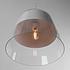 В подвесном светильнике умело сочетается белый металл и стеклянный абажур, подвешенный на белой цепочке. Такой предмет интерьера служит прекрасной иллюстрацией стиля модерн середины XX века. Если добавить ретро-лампочку Эдисона, светильник преображается и заливает помещение тёплым желтоватым светом.