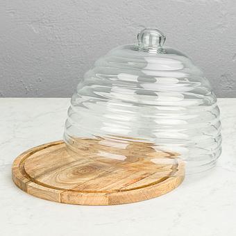 Деревянная доска с колпаком Bee Dish And Cover Small
