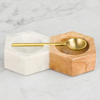 Набор для специй Set Of 2 Salt And Pepper Marble And Mango Wood