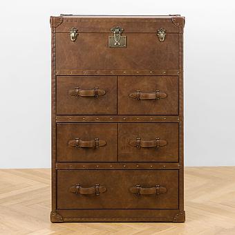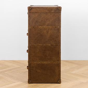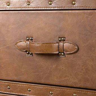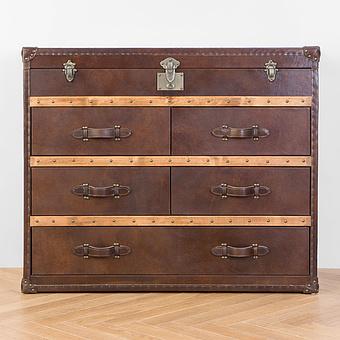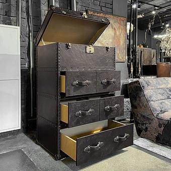 Эргономичные рабочие кресла с кожаной обивкой. Переосмысленные старинные сундуки и ретро-чемоданы, которые перевоплотились в журнальные столики, тумбы и комоды.