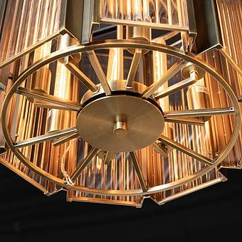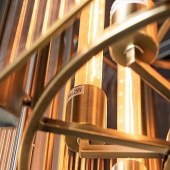 Свет преломляется и играет тёплыми оттенками на острых гранях ребристого стекла. Холодный блеск железа в тандеме с сияющими плоскостями хрусталя делает светильники изящными. Они напоминают кусочки льда, из которых Каю, мальчику из сказки “Снежная королева”, надо было сложить слово “Вечность”.