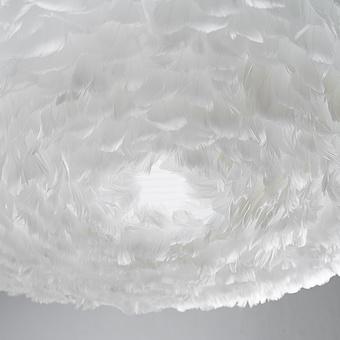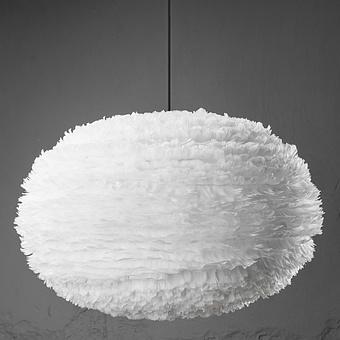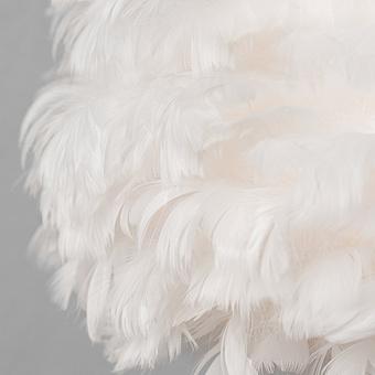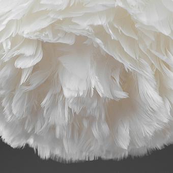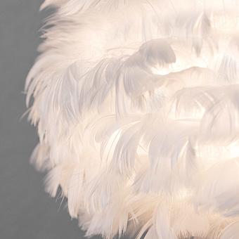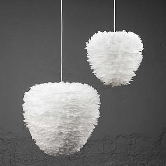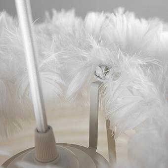 Абажур полностью сделан из натуральных гусиных перьев. Каждое перышко вручную приклеивается к бумажному основанию. Лампа излучает мягкий рассеянный свет, поэтому идеально подойдет для спальни, а также других жилых помещений, где не нужно яркое освещение. Подвесные светильники оснащены регулируемым проводом, что позволяет устанавливать их на различную высоту в любом интерьере.