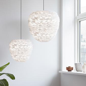 Эос в древнегреческой мифологии — богиня утренней зари, которую часто изображали крылатой. Поэтому дизайнеры из датской компании Umage и решили назвать серию светильников из натуральных перьев Eos.