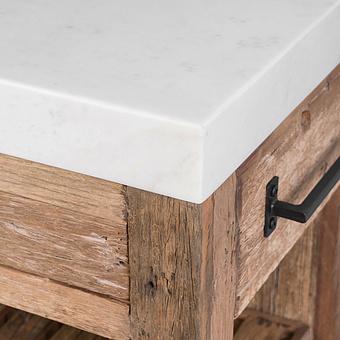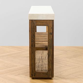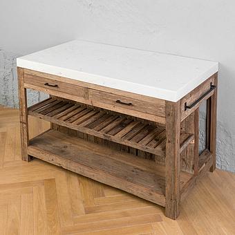 Предметы мебели из коллекции Greta соединяют в себе, на первый взгляд, несочетаемые материалы: грубоватую переработанную древесину и роскошный мрамор. Кухонный остров, консольный стол, стеллаж порадуют тех, кто обладает небанальным взглядом на вещи и создаёт свой мир, отбирая лучшее из лучшего.