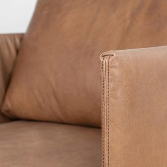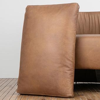 Элегантный силуэт обернут в мягкую и гладкую кожу, ловко стянутую в подлокотниках, а подушка спинки набита натуральным гусиным пером. Этот материал хорошо подстраивается под форму тела, создавая приятное ощущение уюта и обволакивания. Также гусиный пух - лучший выбор с точки зрения терморегуляции, он сохраняет тепло в холодное время года и создаёт хорошую вентиляцию в тёплое, поддерживая комфортную температуру. Гусиный пух-перо - лёгкий, экологичный и дорогой материал, используемый в диванах премиум-качества.