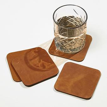 Набор из 5-ти подставок под стаканы Set Of 5 Square Coasters Caramel Old натуральная кожа Caramel Old