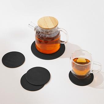 Набор из 5-ти подставок под стаканы Set Of 5 Round Coasters натуральная кожа Smoky