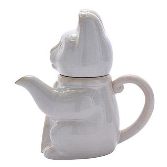 Необычное дизайнерское решение - использовать поднятую лапу как носик чайника. А сзади есть ручка. Чудесная фигурка представлена в четырёх цветах: чёрный, золотой, белый, синий. Гладкая текстура фарфора придаёт коту глянцевый вид.